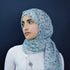 Pretty blue flowers float across a soft and delicately shimmering ivory white background. Our Blue Orchard hijab combines the luxury and softness of silk with the comfort and wearability of cotton.